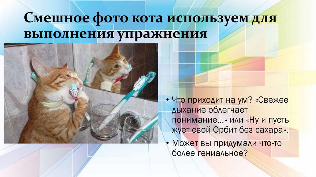 Смешное фото кота используем длявыполнения упражнения
