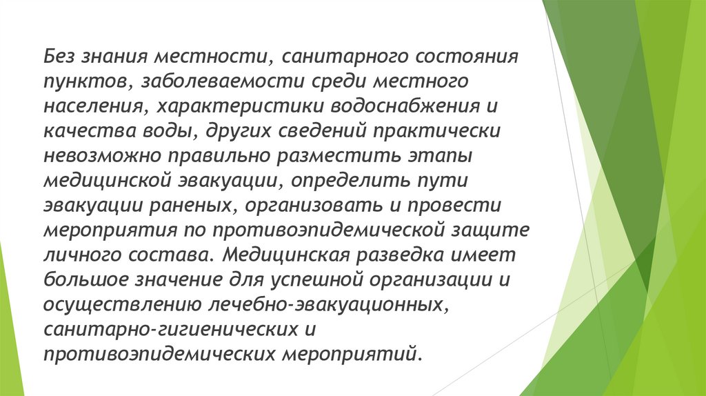 Без знания местности, санитарного состоянияпунктов, заболеваемости среди местного