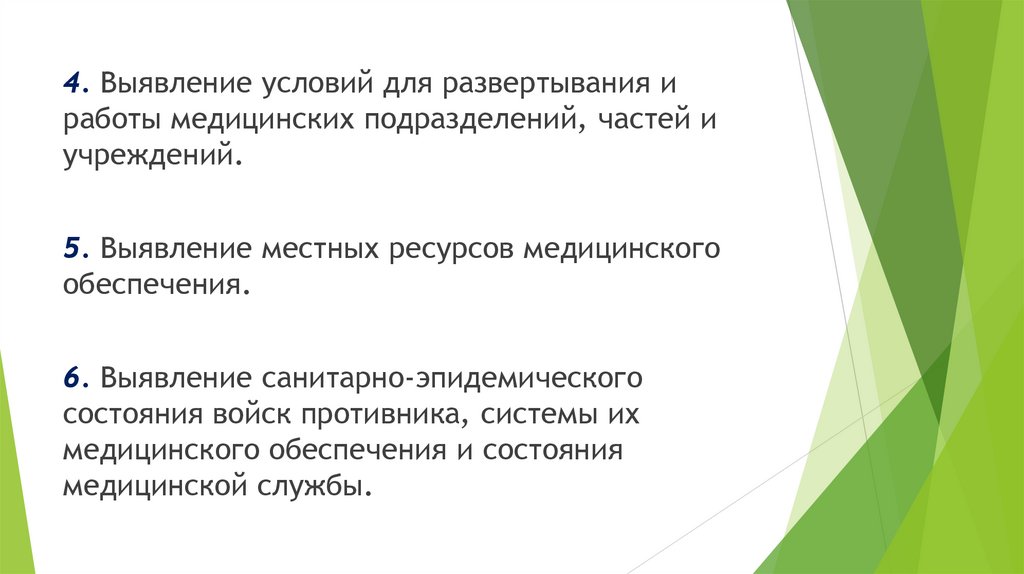 4. Выявление условий для развертывания иработы медицинских подразделений, частей и