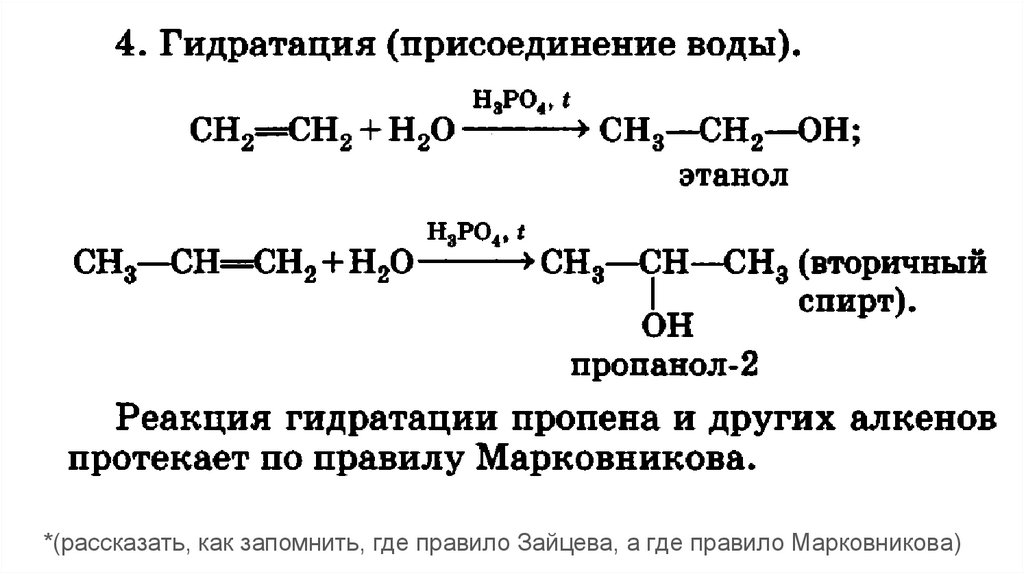 *(рассказать, как запомнить, где правило Зайцева, а где правило Марковникова)19.