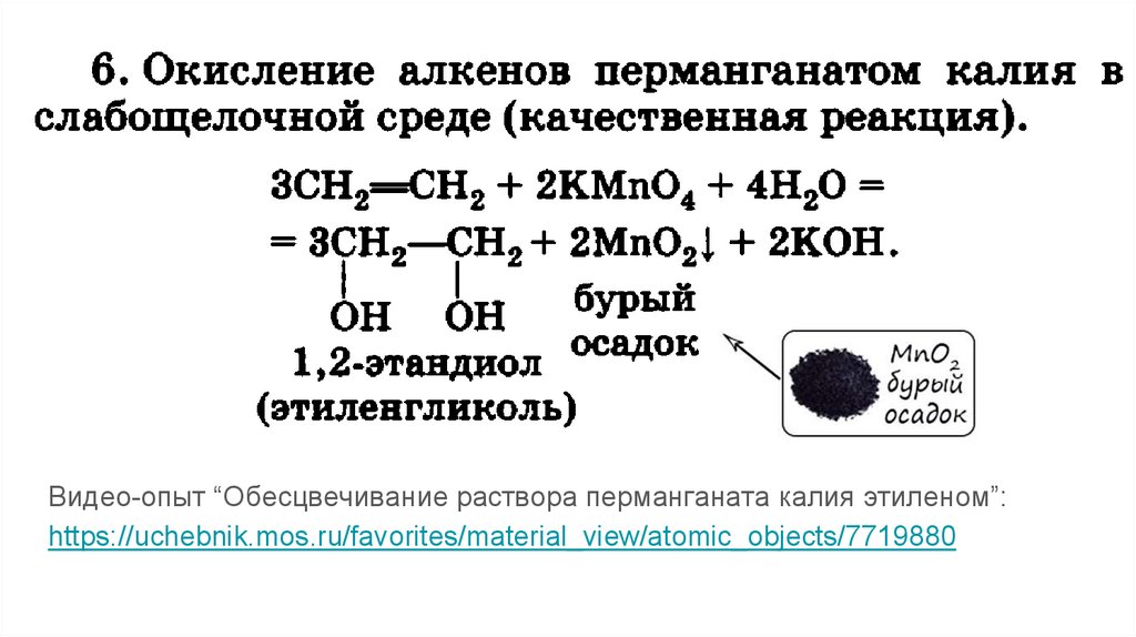 Видео-опыт “Обесцвечивание раствора перманганата калия этиленом”:https://uchebnik.mos.ru/favorites/material_view/atomic_objects/7719880