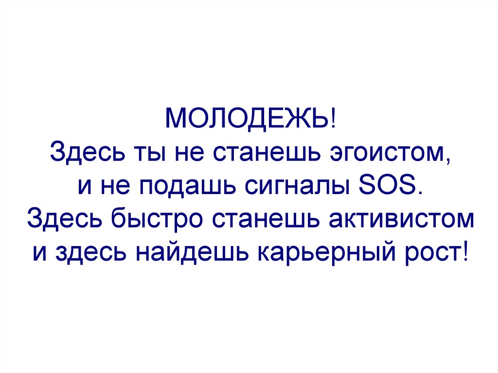 МОЛОДЕЖЬ!Здесь ты не станешь эгоистом,