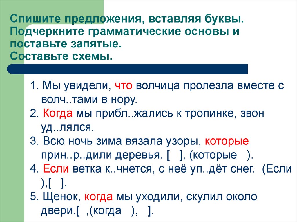 Спишите предложения, вставляя буквы.Подчеркните грамматические основы и