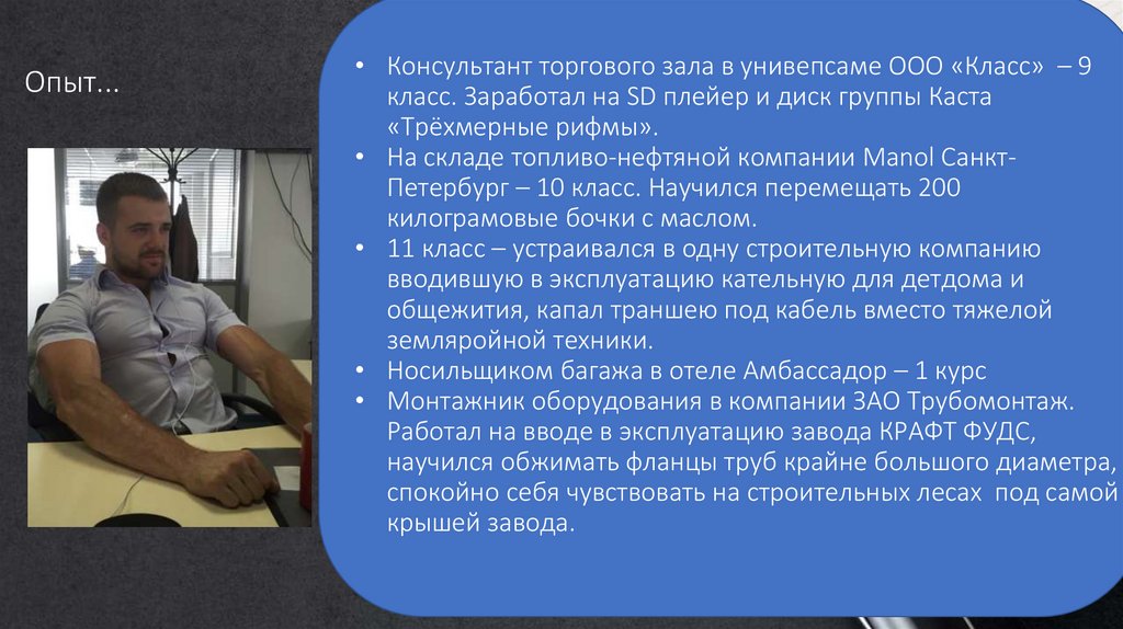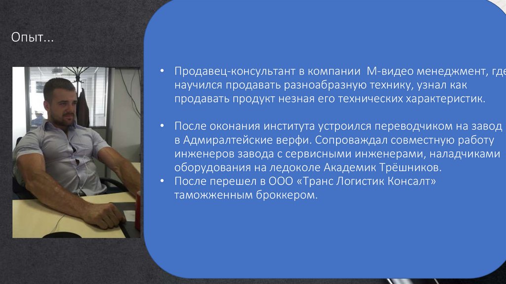 Опыт...• Продавец-консультант в компании М-видео менеджмент, где