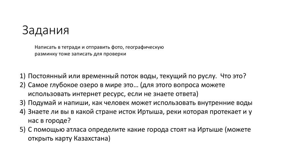 ЗаданияНаписать в тетради и отправить фото, географическую