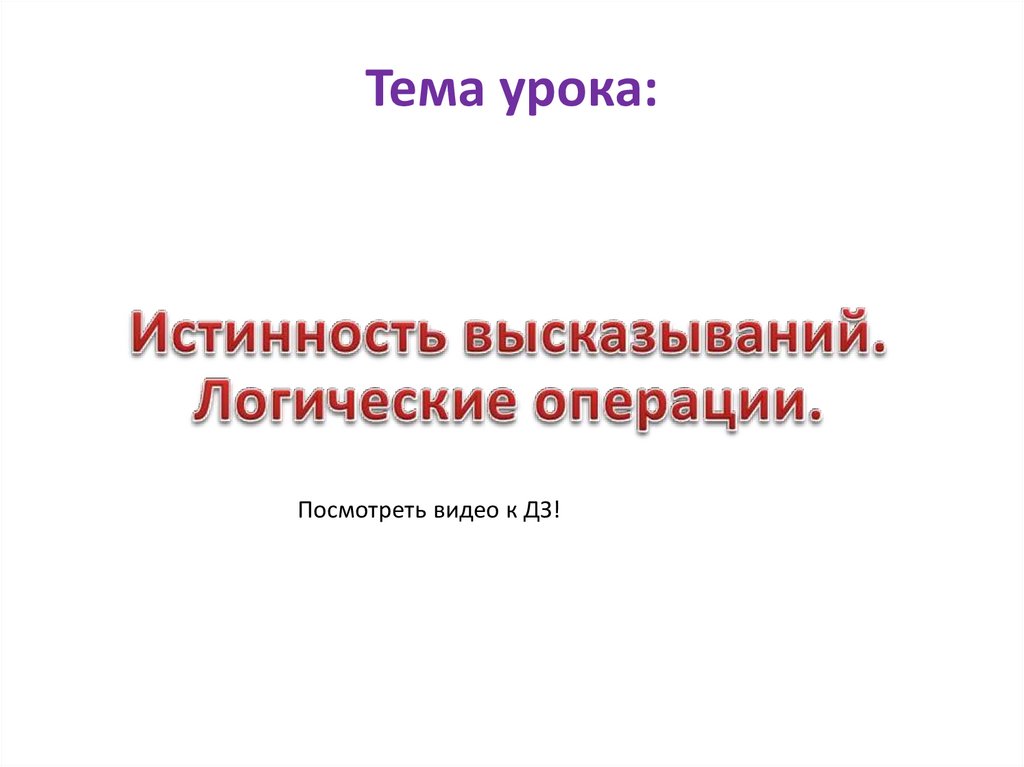 Тема урока:Посмотреть видео к ДЗ!