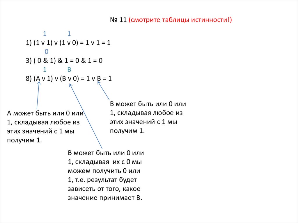 № 11 (смотрите таблицы истинности!)1