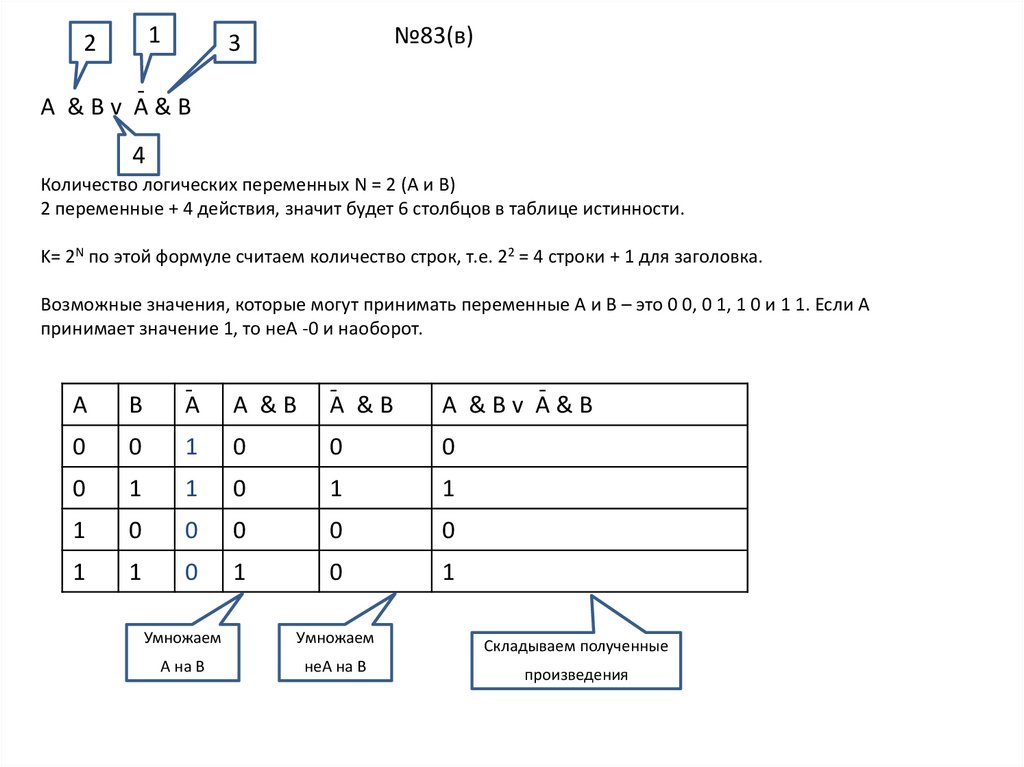 K= 2N по этой формуле считаем количество строк, т.е. 22 = 4 строки + 1 для заголовка.