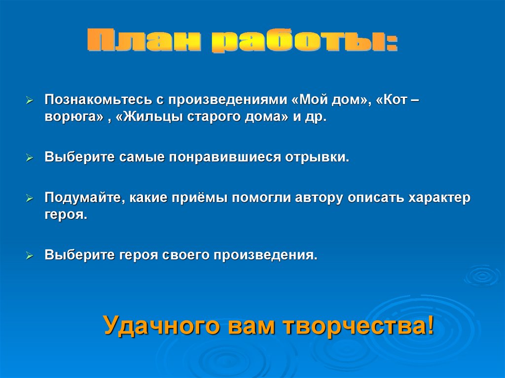 Познакомьтесь с произведениями «Мой дом», «Кот –ворюга» , «Жильцы старого дома» и др.