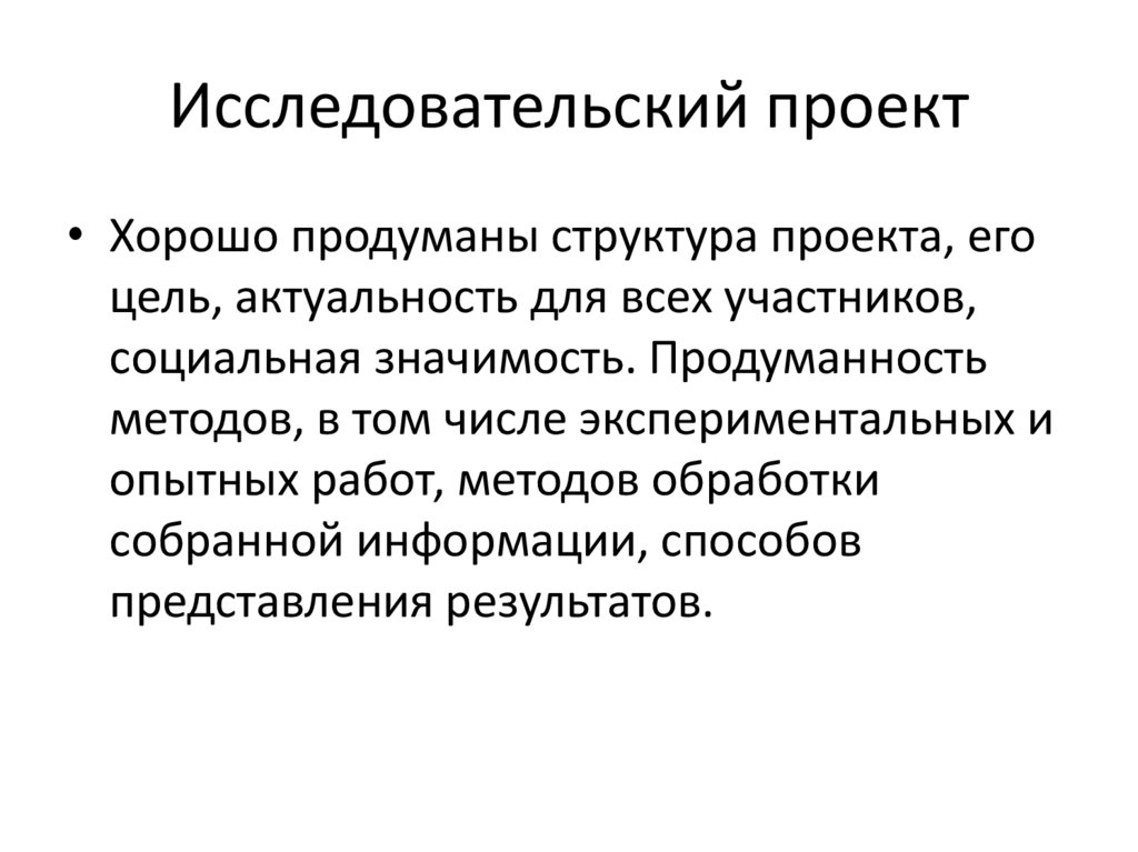 Исследовательский проект• Хорошо продуманы структура проекта, его