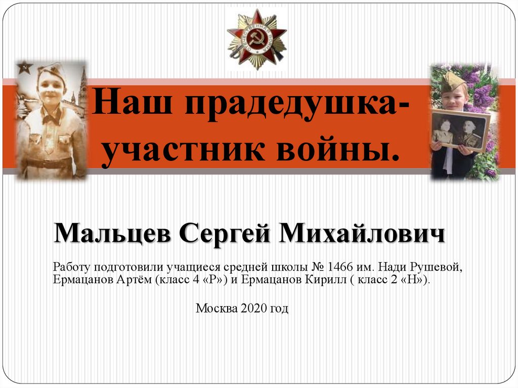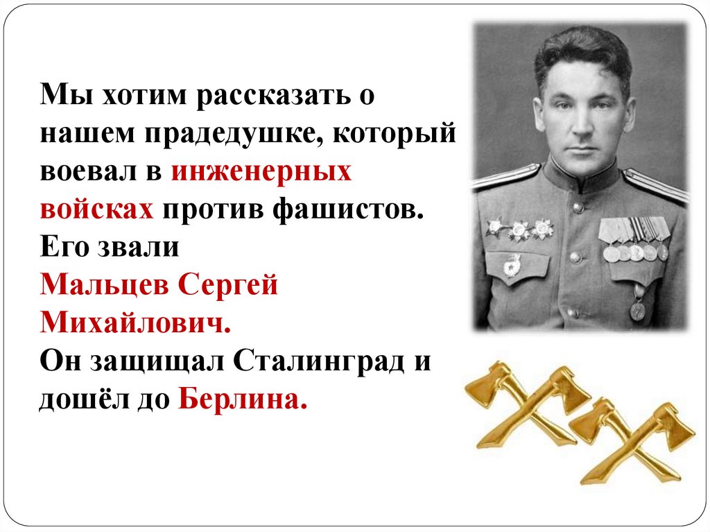 Наш прадедушкаучастник войны.Мальцев Сергей Михайлович