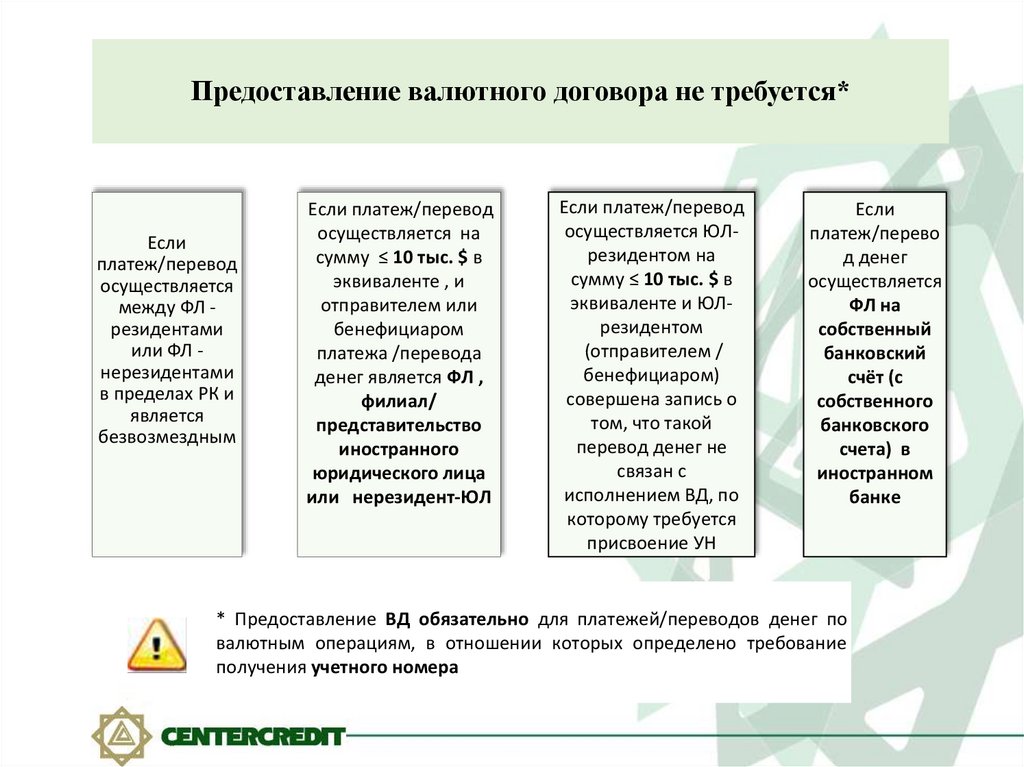 Предоставление валютного договора не требуется*Если