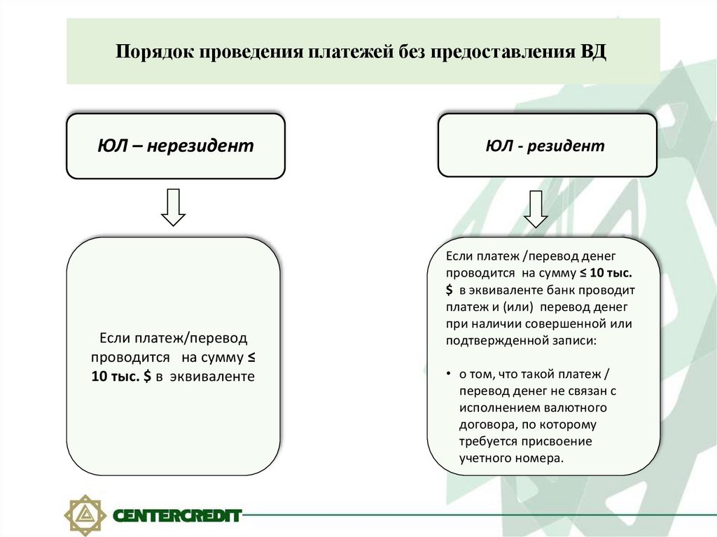 Порядок проведения платежей без предоставления ВДЮЛ – нерезидент