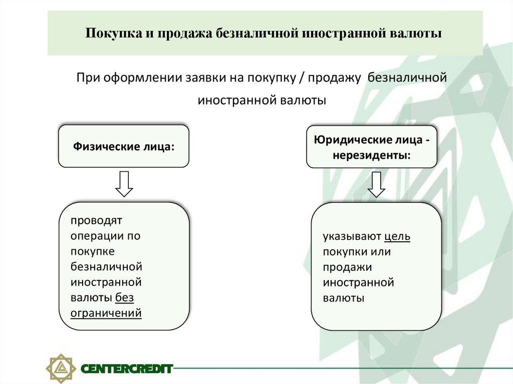 Покупка и продажа безналичной иностранной валютыПри оформлении заявки на покупку / продажу безналичной