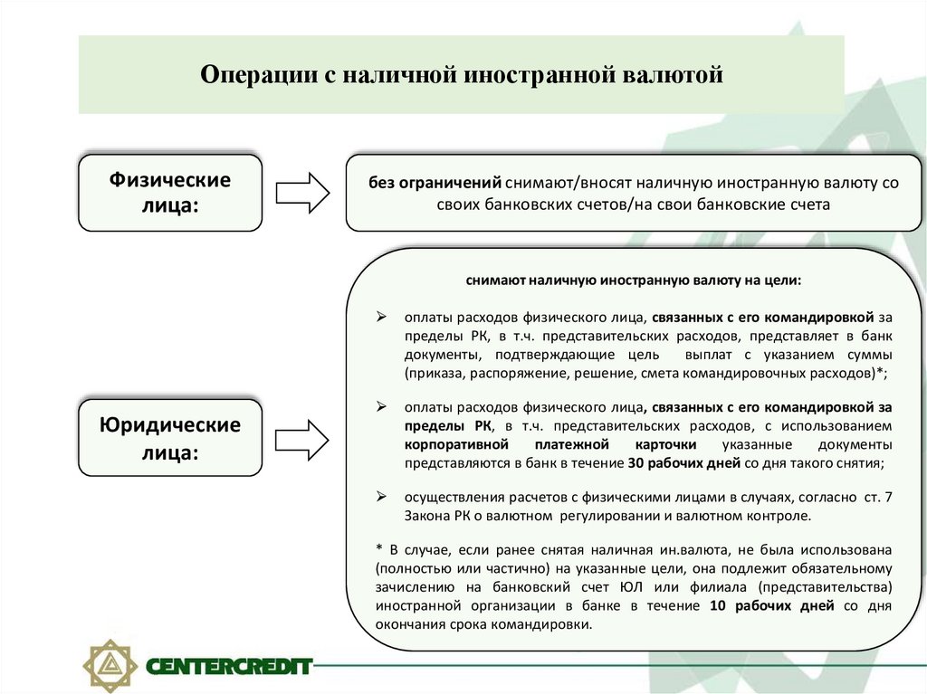 Операции c наличной иностранной валютойФизические