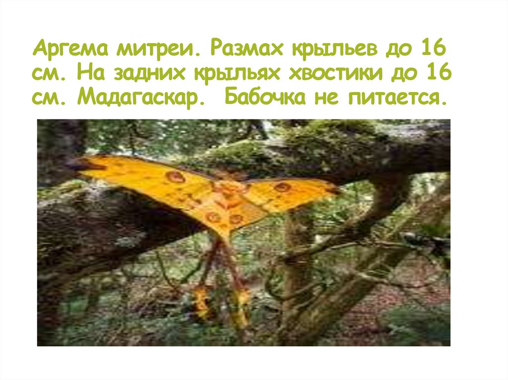 Аргема митреи. Размах крыльев до 16см. На задних крыльях хвостики до 16