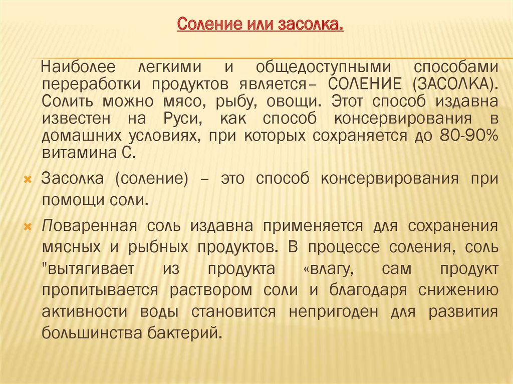переработки продуктов является– СОЛЕНИЕ (ЗАСОЛКА).