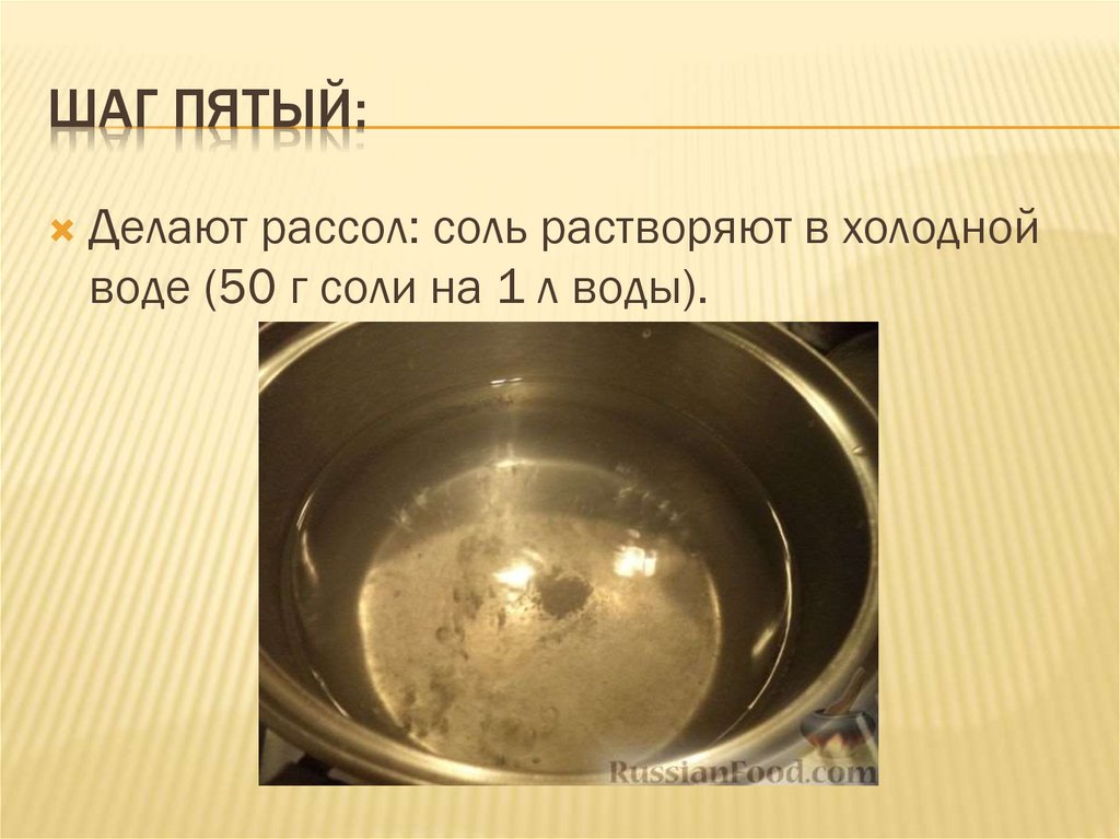 ШАГ ПЯТЫЙ:Делают рассол: соль растворяют в холодной