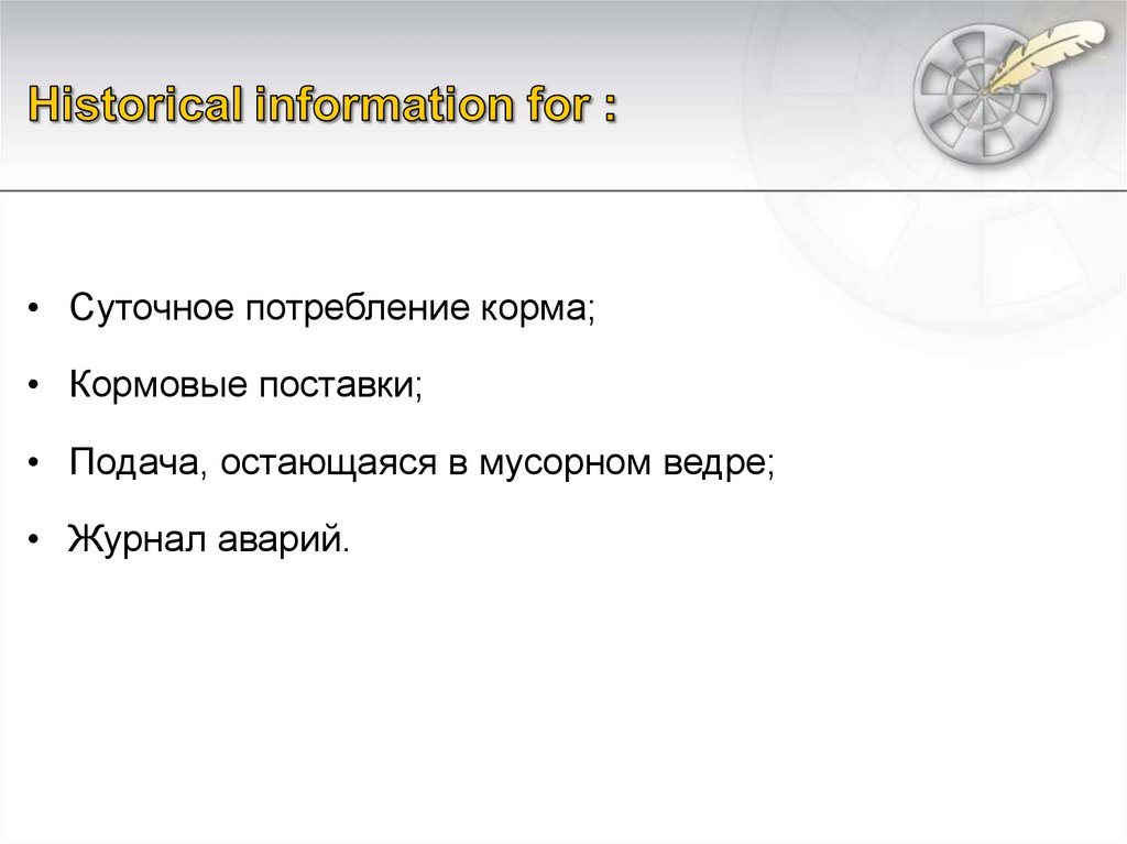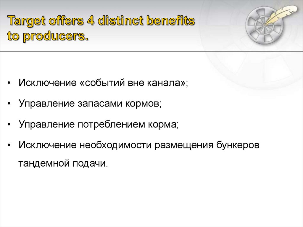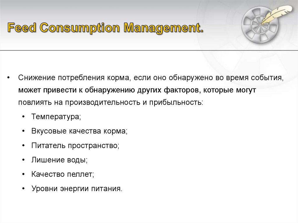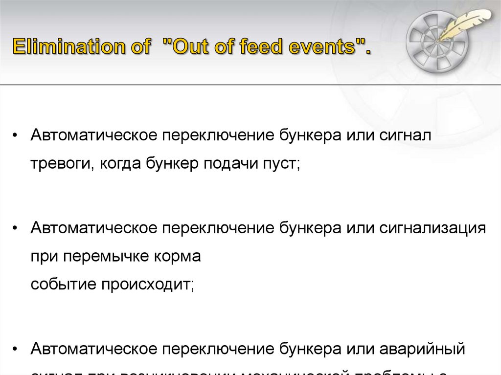 • Исключение «событий вне канала»;• Управление запасами кормов;