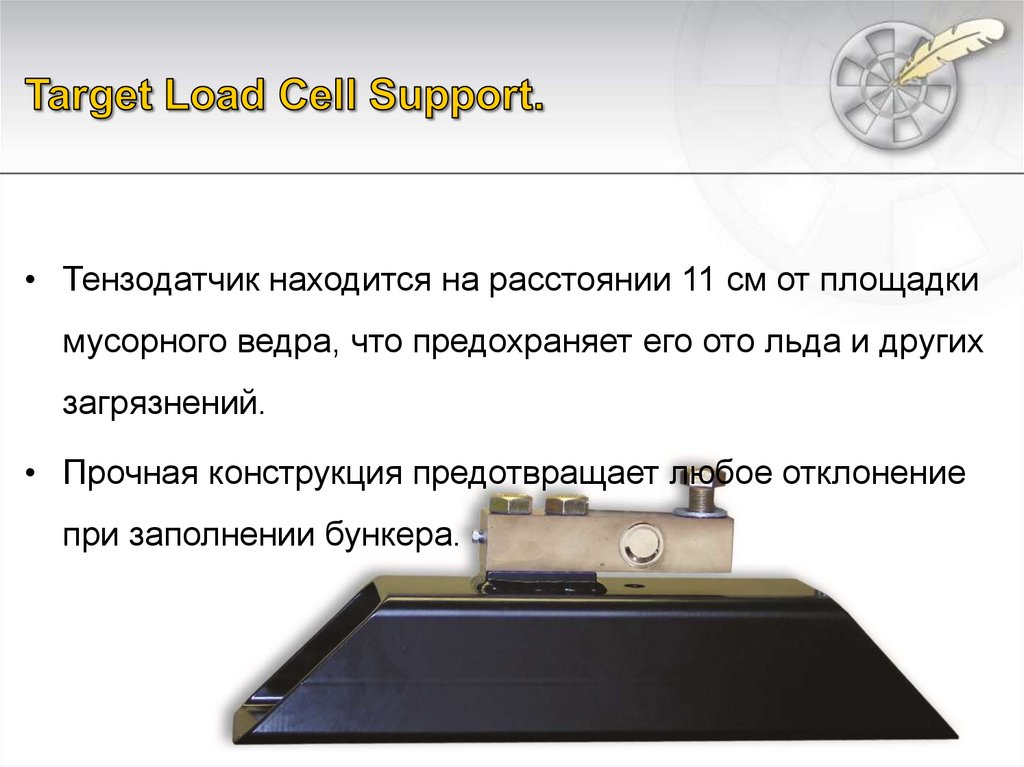 • Тензодатчик находится на расстоянии 11 см от площадкимусорного ведра, что предохраняет его ото льда и других