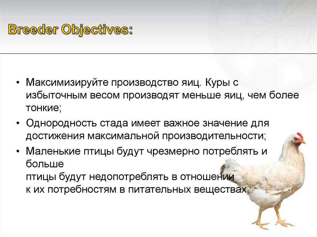 • Максимизируйте производство яиц. Куры сизбыточным весом производят меньше яиц, чем более