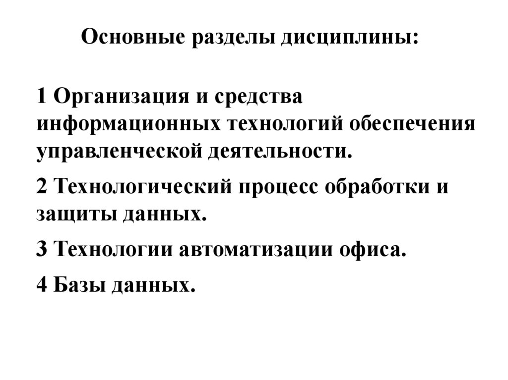 Основные разделы дисциплины:1 Организация и средства