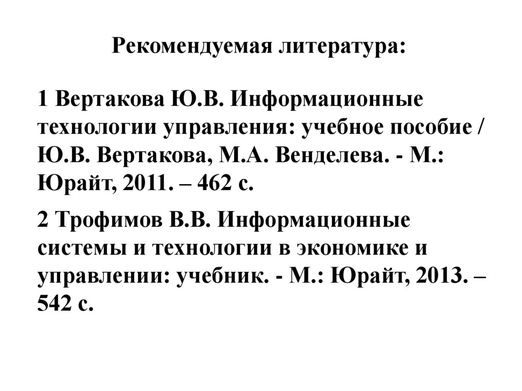 Рекомендуемая литература:1 Вертакова Ю.В. Информационные