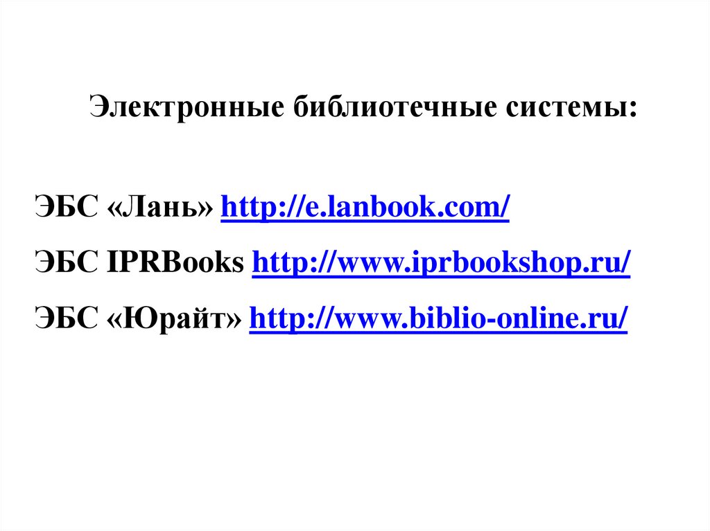 Электронные библиотечные системы:ЭБС «Лань» http://e.lanbook.com/