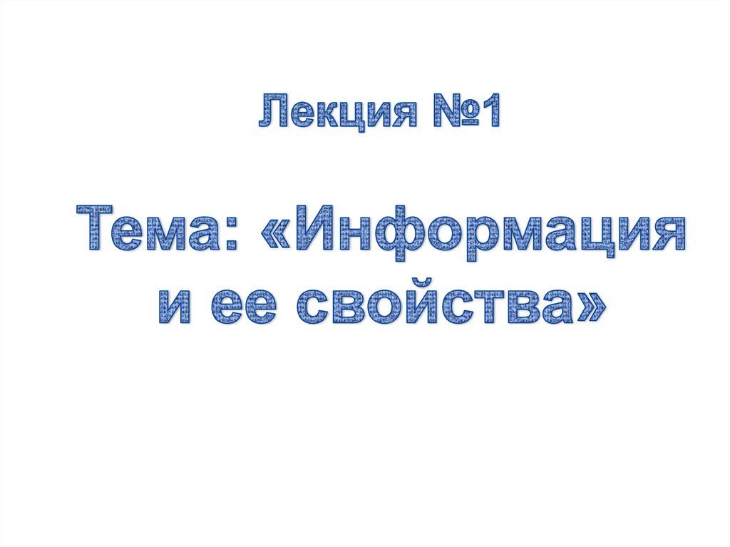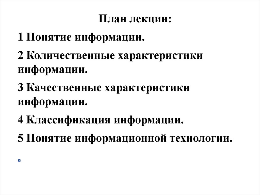 План лекции:1 Понятие информации.
