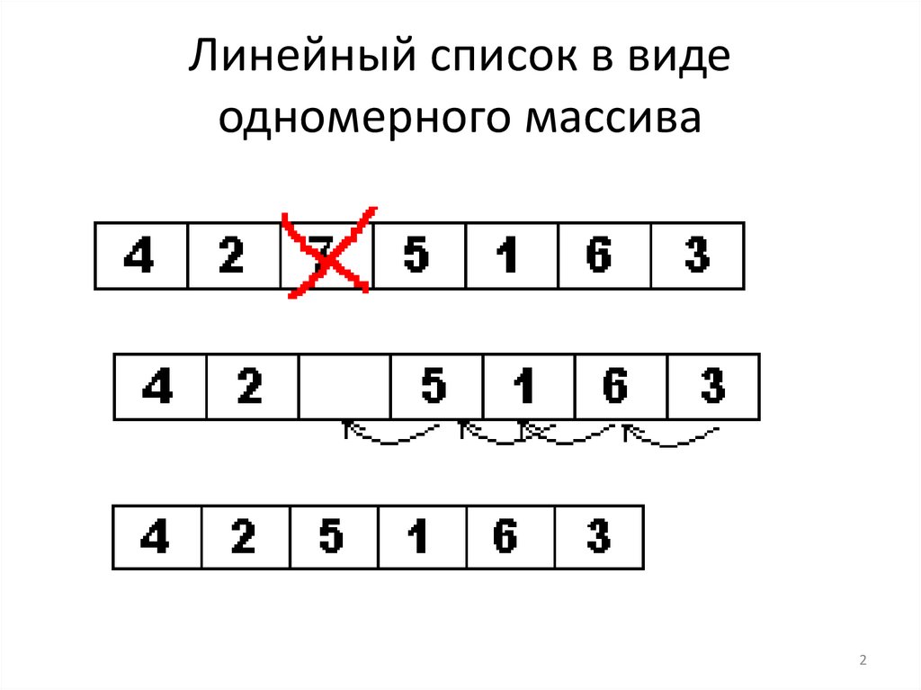 Линейный список в видеодномерного массива