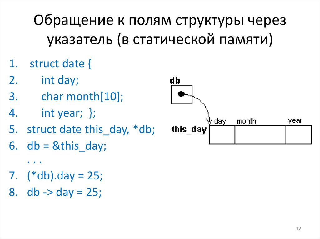 Обращение к полям структуры черезуказатель (в статической памяти)