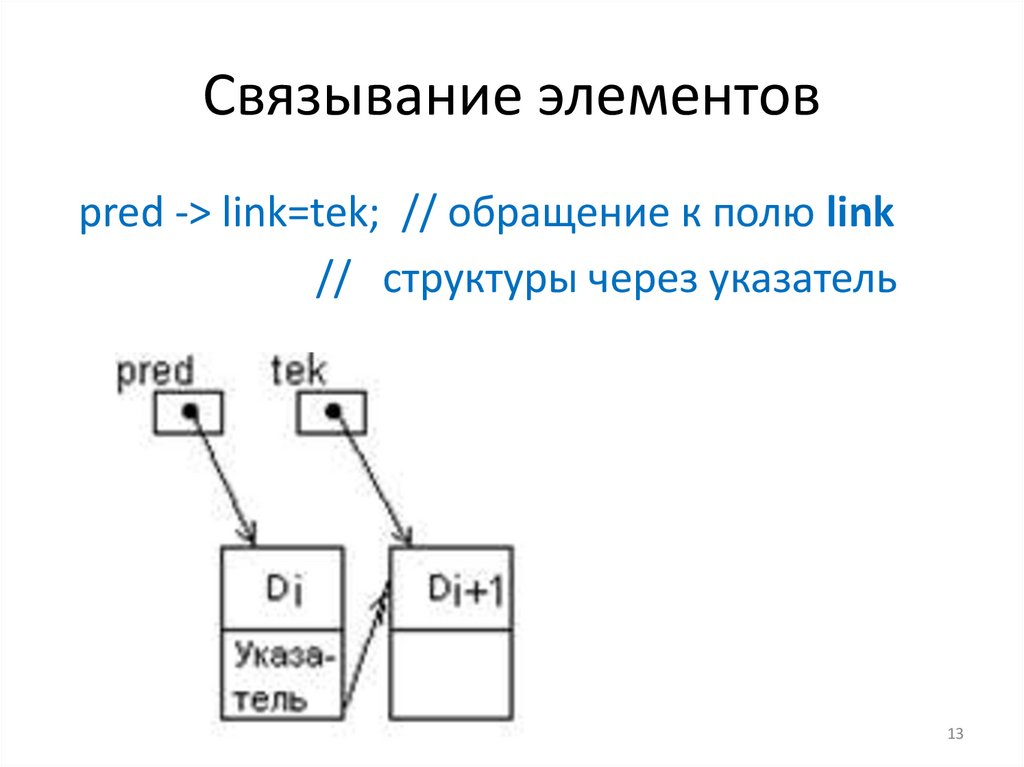 Связывание элементовpred -> link=tek; // обращение к полю link
