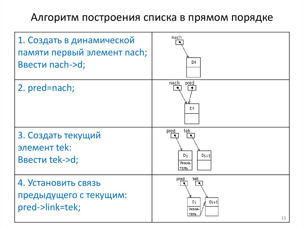 Алгоритм построения списка в прямом порядке1. Создать в динамической