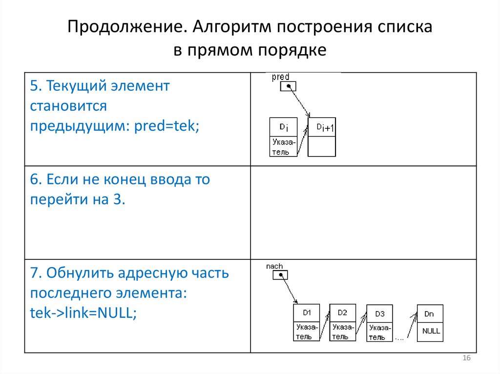 Продолжение. Алгоритм построения спискав прямом порядке