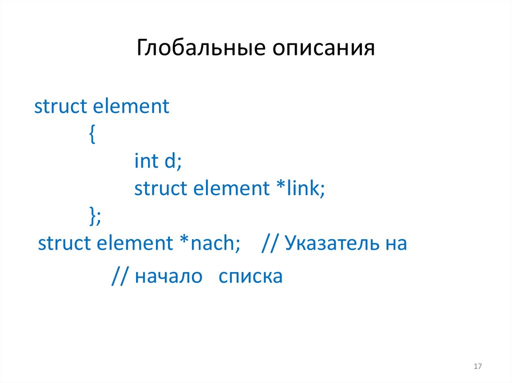 Глобальные описанияstruct element