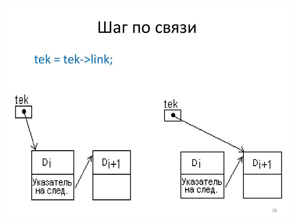 tek = tek->link; // Шаг по связи