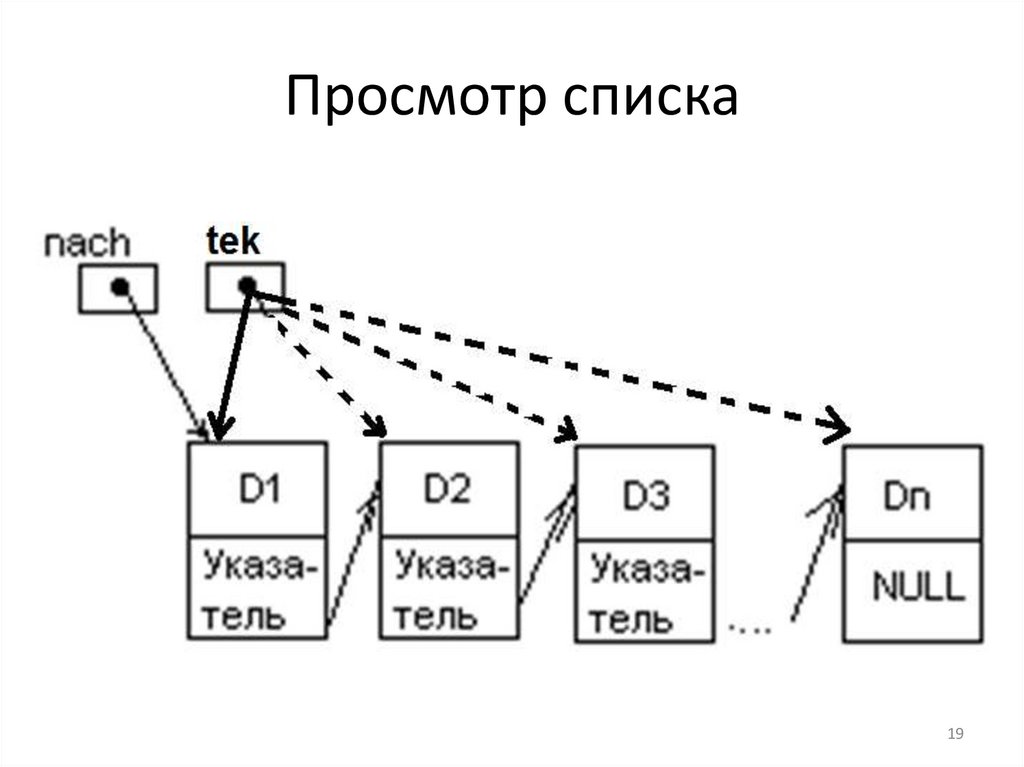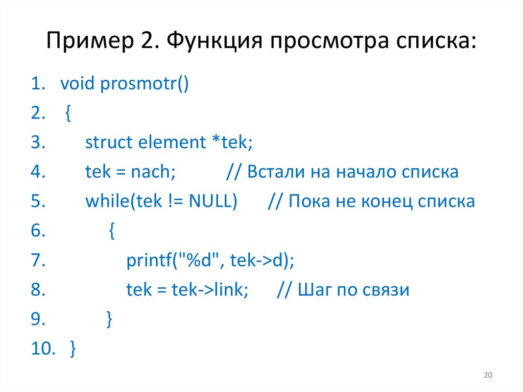 Пример 2. Функция просмотра списка:1. void prosmotr()