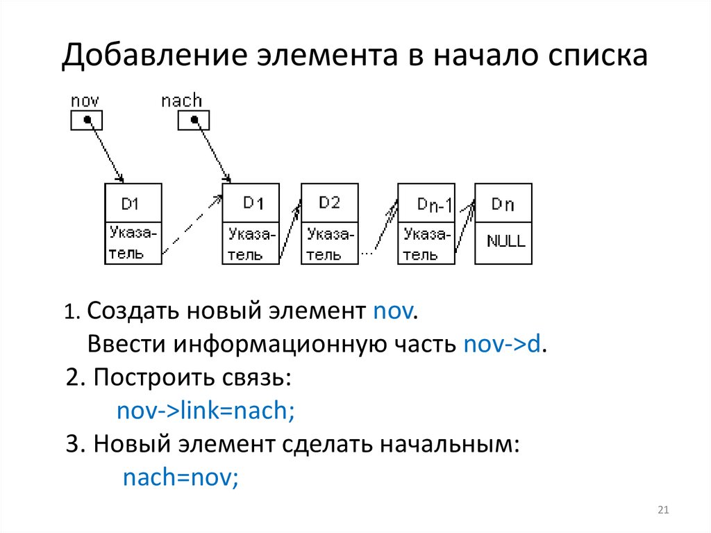 Добавление элемента в начало списка1. Создать новый элемент nov.