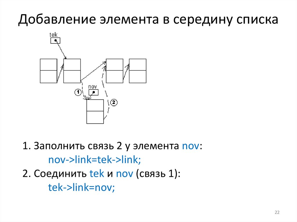 Добавление элемента в середину списка1. Заполнить связь 2 у элемента nov: