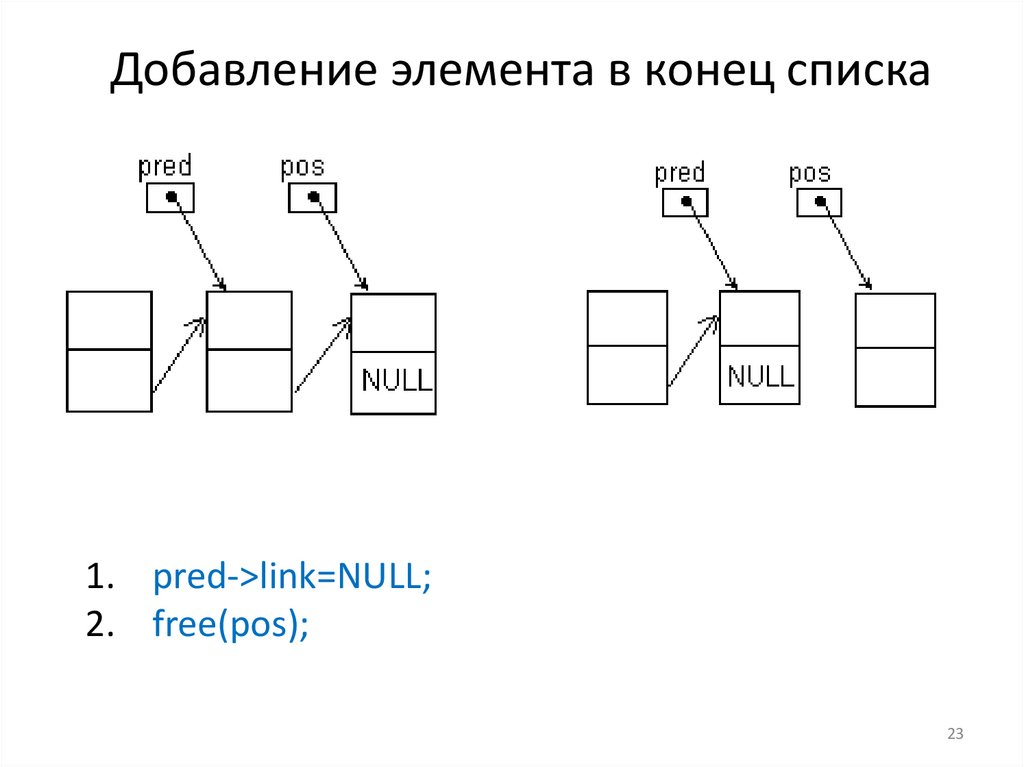 Добавление элемента в конец списка1. pred->link=NULL;