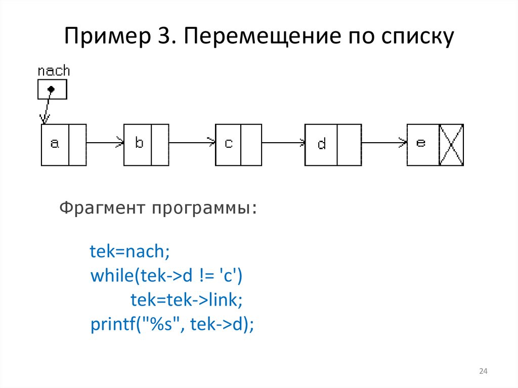 Пример 3. Перемещение по спискуФрагмент программы: