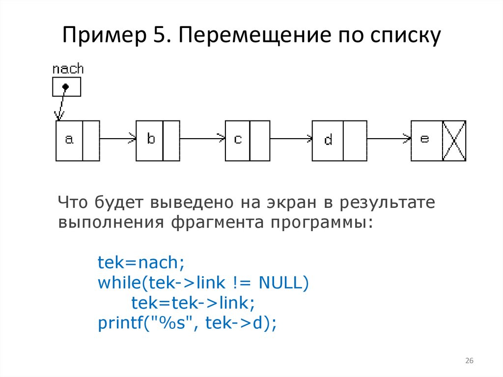 Пример 5. Перемещение по спискуЧто будет выведено на экран в результате