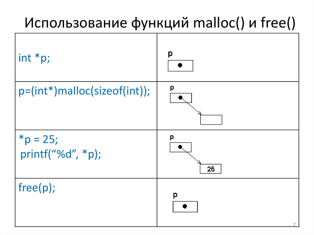 Использование функций malloc() и free()int *p;