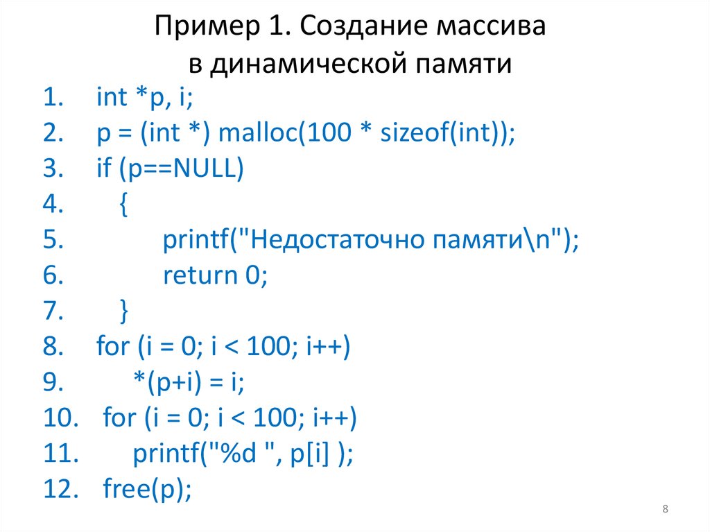 Пример 1. Создание массивав динамической памяти