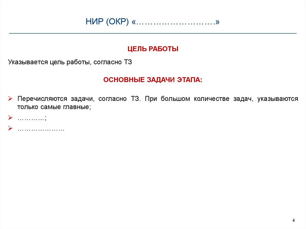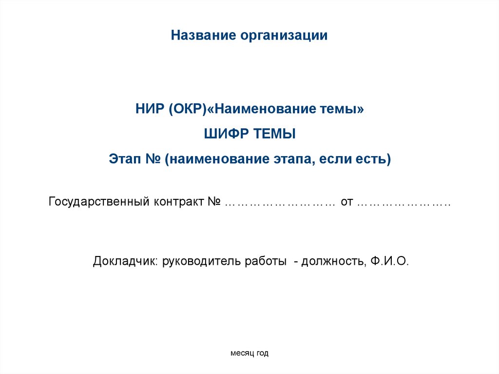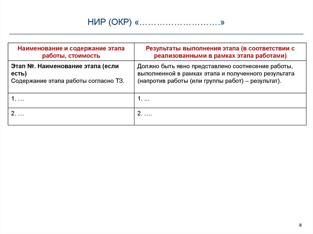 Информация, представляемая в презентации на заседании рабочей группы по рассмотрению результатов этапов работ. Шаблон
