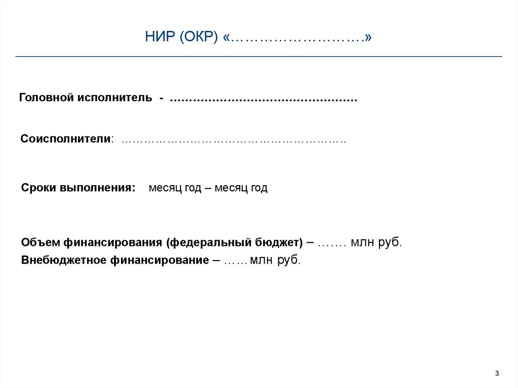 НИР (ОКР) «……………………….»Головной исполнитель - ………………………………………….