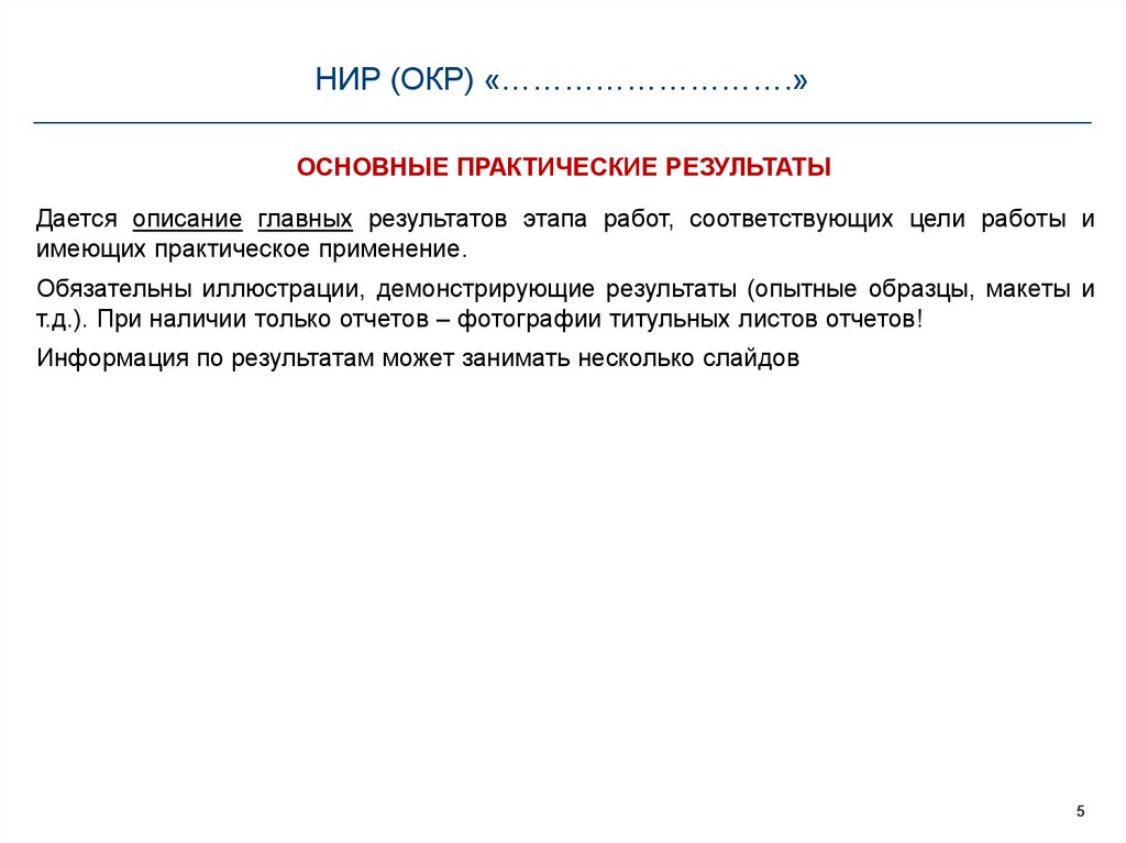 НИР (ОКР) «……………………….»ОСНОВНЫЕ ПРАКТИЧЕСКИЕ РЕЗУЛЬТАТЫ
