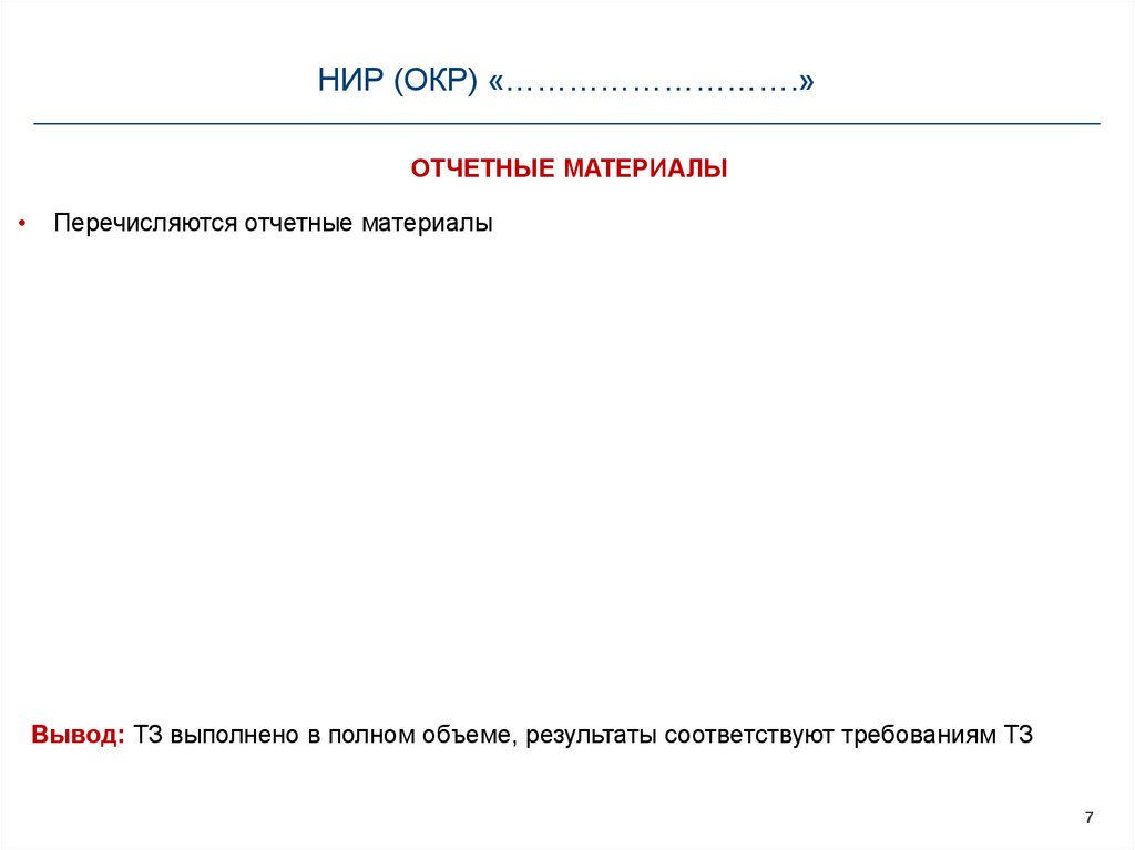 НИР (ОКР) «……………………….»ОТЧЕТНЫЕ МАТЕРИАЛЫ
