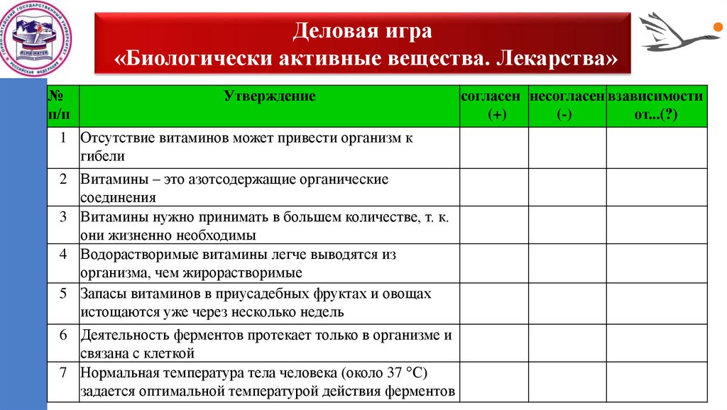 Деловая игра«Биологически активные вещества. Лекарства»