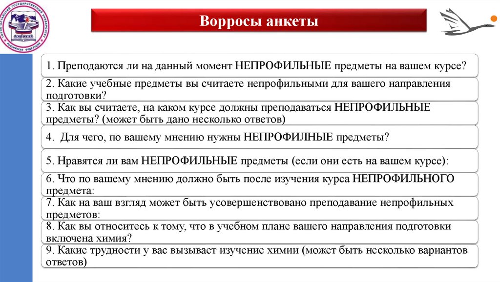 Ворросы анкеты1. Преподаются ли на данный момент НЕПРОФИЛЬНЫЕ предметы на вашем курсе?